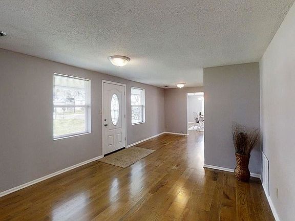 Remodeled ranch in De Soto! Move right in and enjoy the large covered front porch, refinished white oak hardwood floors, & new paint! The bright kitchen features granite counters, subway tile backsplash, and white cabinets. Updated full and half bathrooms. Windows and roof replaced in the last two years. Large yard and detached garage. This is the one!