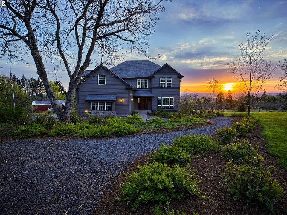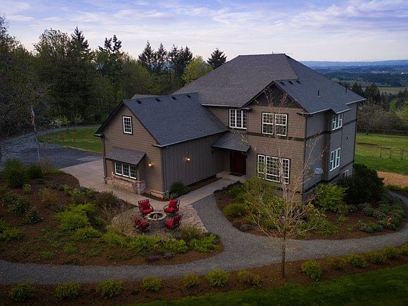 This magnificent home offers beautiful surroundings and well-thought out amenities along with an off-grid experience if you choose. Wake up to sunrises lighting up Mt. Hood, Mt. Adams, Mt. St. Helens & Mt. Rainier. 5.6 groomed acres with ample room for animals, gardening & family life. Centrally located between Beaverton, Tigard, Sherwood & Newberg, it's a perfect location for retirement or having a small farm with room for horses.