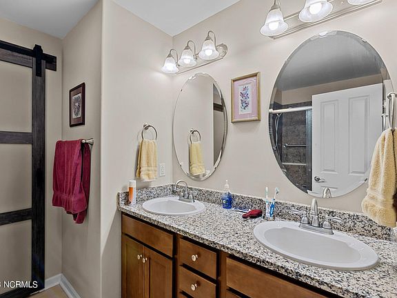 What a cute and very well maintained slab home on the corner of Austin Avenue and Buttercup Court, a short cul-de-sac street! Located in the highly desirable Longleaf Pines subdivision, you're only 10 minutes to downtown New Bern dining and shopping and 14 minutes to Slocum Gate (the back gate) of MCAS Cherry Point! This house has so many great amenities, such as: easy care LVP throughout except for tile in the bathrooms and carpet in the bedrooms and FROG; a natural gas tankless Rinnai water heater; granite kitchen and bathroom countertops (yes, in both bathrooms!); a natural gas fireplace; a large kitchen pantry; a tiled shower surround in the master bathroom; a sliding barn door on the master closet; bull-nozed (rounded) sheetrock corners throughout; zoned HVAC; a side-load garage; and a cozy and private backyard with a large screened porch and storage shed. This house has so many builder upgrades compared to the other homes in this neighborhood! Move-in ready! Schedule a showing today before it's too late!