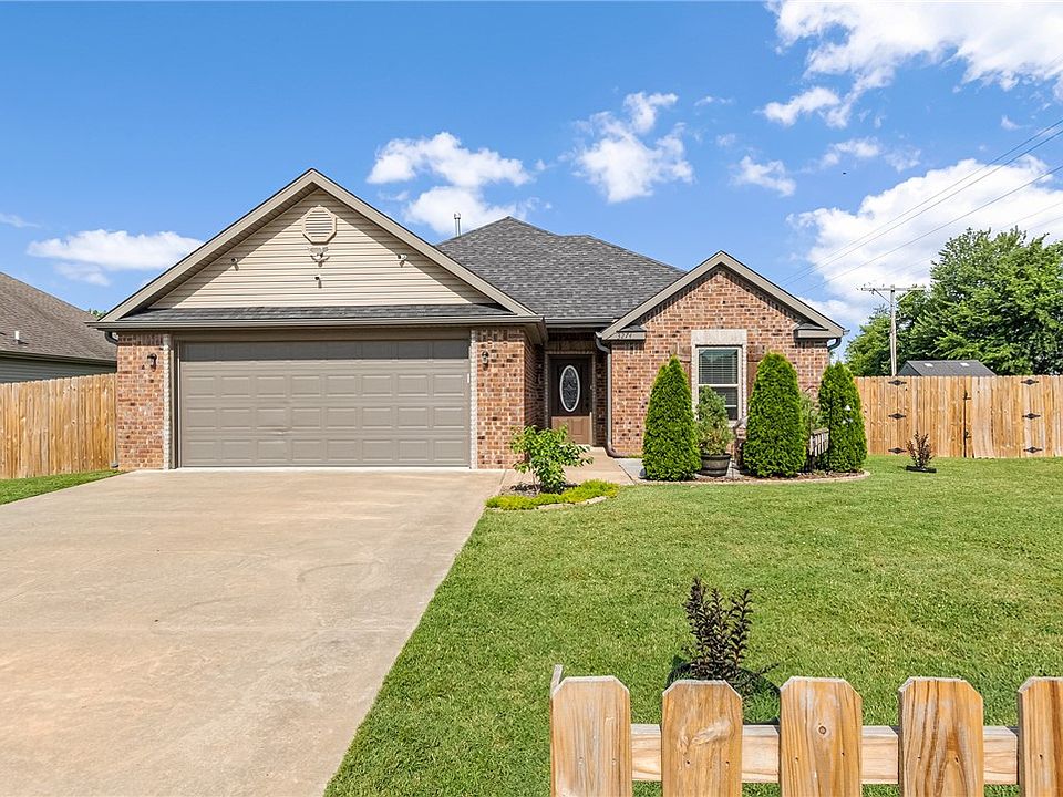 The WOW of this home hits you as soon as you step out of the car and set eyes on this park like setting front yard. Don't worry, the WOW continues when you open your new front door and are greeted by a very spacious open concept living room that flows to kitchen featuring plenty of granite counter and cabinet space along with huge pantry, stainless appliances and eat-in dining. Primary bedroom at the back of home and features a tray ceiling with en-suite with dual vanities and nice walk-in shower. The other side of the home adds two more good sized bedrooms, one showcasing a cathedral ceiling, as well as another bathroom. Don't miss all the details in the home with an abundance of double crown molding, wood cased doors and windows and an overall spotless move in ready home! The real fun starts out back with a new deck for relaxing, fire pit, vegetable garden, shed, mature trees for shading and huge fenced yard with double gate entry. Washer, dryer, refrigerator, 4K security cameras and weather station convey WAO.