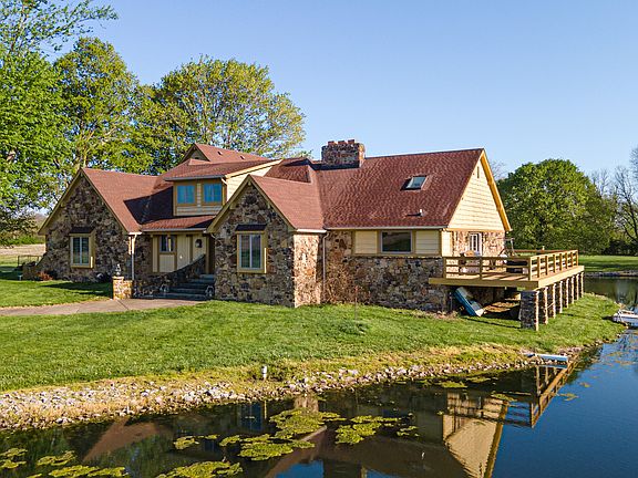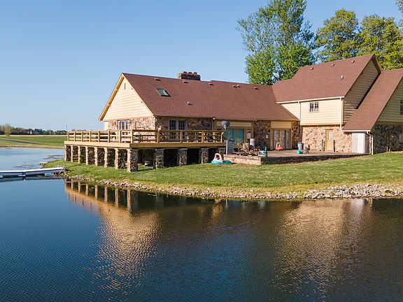 To be sold at Auction on Saturday, June 17th @ 1 PM. A property unlike any other! 13.6+/- Acres w/ a 2 acre lake in the beautiful country setting of Johnson County. A large 5 bedroom, 3.5 bath, 4,421 sq. ft. home that boast great character. A beautiful great room w/ 15' vaulted ceilings, exposed wooden beams, & an incredible custom fireplace. Kitchen, dining room, and deck that overlook the lake! The primary bedroom w/ a private bathroom and walk in closet are on the main floor. Upstairs you will find 4 bedrooms and a full bathroom that has 2 separate showers! Outside is a nice 36x52 Morton Building with 4 horse stalls, tack room, hay storage, and concrete floor in the workshop area. A must see property with many great features to offer.