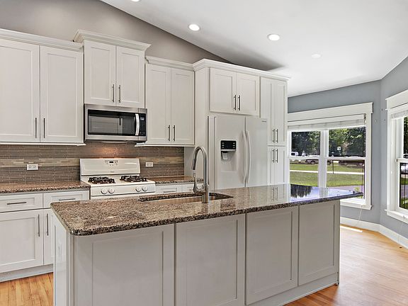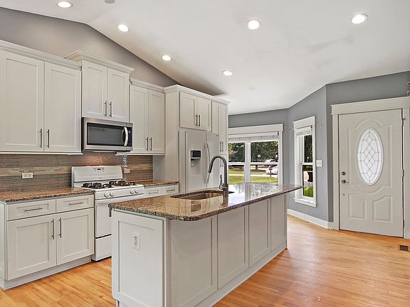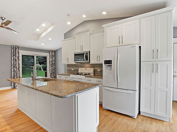 Welcome to this meticulously updated and truly stunning home that has undergone a complete transformation. Every detail has been carefully considered, resulting in a residence that is nothing short of extraordinary. Prepare to be impressed by the gourmet kitchen, a true centerpiece of this home. Adorned with shaker-style custom cabinets featuring soft-close drawers, finished panels, and 42" upper cabinets with crown molding and light rail, this kitchen is as functional as it is beautiful. The extra deep island sink and an expansive 8-foot long island provide ample space for meal preparation and casual dining. The kitchen is equipped with newer appliances, ensuring a seamless cooking experience. Adding to the allure is the custom designer glass and stone backsplash and stunning granite countertops, which elevate the aesthetic to new heights. The investment in this home extends beyond the interior, with significant updates made to the exterior as well. The roof, siding, soffit, and fascia were all replaced in 2014, ensuring peace of mind and enhancing the home's curb appeal. In 2018, a new patio was added, providing a welcoming outdoor space for relaxation and entertainment. Key mechanical systems have also been upgraded, including a new furnace and water heater in 2013, as well as a new Trane air conditioning unit in 2018. The garage door, all exterior doors, and interior doors, including the sliding glass door, have been replaced with newer models. In 2014, all windows were upgraded to Anderson windows, guaranteeing energy efficiency and adding a touch of elegance to every room. The flooring throughout this home is simply spectacular. The seller has chosen reclaimed solid 1-inch thick maple flooring, sourced from a local gymnasium, which has been professionally refinished to perfection. The result is a warm and inviting ambiance that seamlessly blends contemporary style with a nod to the past. With a cul-de-sac location, this home offers both comfort and convenience. Imagine living in a tranquil neighborhood, where a park is just a stone's throw away, providing endless opportunities for outdoor activities and leisurely strolls. This home is a true gem that combines modern elegance, thoughtful design, and exceptional craftsmanship. With every inch of this property thoughtfully updated, it presents a unique opportunity for those seeking a turnkey home that exceeds all expectations. Don't miss your chance to own this remarkable residence. Schedule a private showing today and discover the epitome of refined living in this meticulously updated home.