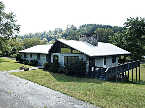 Wonderful hard to find Tuckasegee River Front home on 2.22 acres. Features: large flat yard to the river where a large gazebo awaits your guest or private evening listening to the water. Home features an oversized vaulted covered porch w/ built in outdoor kitchen (gas grill, cooktop & under counter refrigerator) for entertaining while admiring the river view. plus a large open deck. Inside a foyer leads to a spacious living room w/vaulted tongue & groove ceilings, floor to ceiling stone fireplace. Kitchen has Corian counters, plenty of beautiful cabinets, breakfast nook, old tyme wood cook stove then leads into the formal dining room that also has a wood stove, large french doors that opens to the porch. 3 spacious bedrooms, 2 baths on the main floor, master bedroom has 2 walk-in closets, bay windows, master bath has 2 separate dressing areas w/large walk in shower. Downstairs offers an in-law suite with 1 bedroom & remodeled bath w/floor to ceiling tile & huge walk- shower, double sinks, full kitchen, living room with a double sided fireplace between living room & dining area and its own patio. 2 car garage .All paved access just couple min from shopping. A must see!