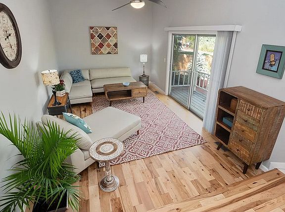 Welcome to this super hip, stylish home that perfectly blends modern comfort with mountain-inspired charm. The spacious main-floor master suite features a private balcony and walk-in closet, complemented by a luxurious new master bath with a glass shower, heated floors, and a standalone tub an ideal retreat. The kitchen is a chef's dream, with new quartz and butcher block countertops, an island, and stunning mountain views. Adjacent is a generous dining room with a cozy fireplace, while the living room opens to a deck, perfect for relaxing and entertaining. The main level showcases new hickory wood floors, adding warmth and character. The sunny basement has new carpet and offers versatile space with two additional bedrooms, a family room, office area, dedicated storage, a fully updated bathroom, and a separate laundry room. Enjoy abundant natural light throughout the home, with scenic views of sunrises and sunsets over the mountains. Additional highlights include central A/C, a whole-house fan for efficient cooling, an oversized two-car garage that can serve as a workshop, and a fenced RV pad for your recreational vehicles. This home combines style, functionality, and breathtaking views