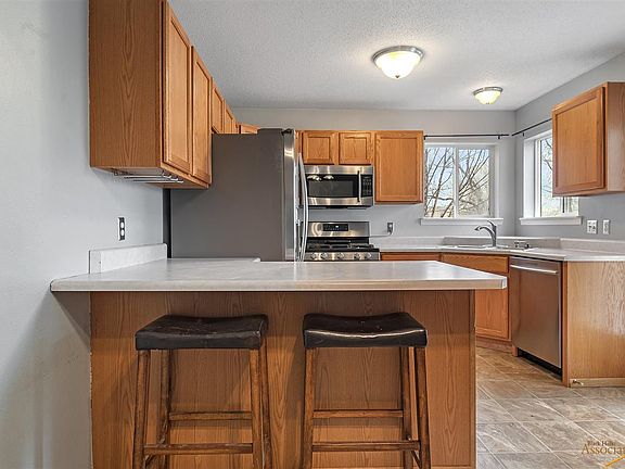 Divine 4BR, 3BA Rapid Valley home located on a cul-de-sac street! This wonderful ranch home offers a large list of features including immediate views of the neighboring open space pond! On the main floor you will find the master suite (which features its very own private bath with a jetted tub as well as a walk-in closet), a kitchen that's complete with a breakfast bar and matching stainless-steel appliances (including a gas range, built-in dishwasher, and microwave), and two of the home's remaining three bedrooms. Located in the basement is a huge 24x12 family room with built-in surround-sound wiring that makes it the ideal space for use as a home theater. Also located in the basement is a large storage room, the home's fourth bedroom, a full bath, the laundry facility, and an 18x8-foot bonus area that can be utilized as a den or office. Outside the house, you'll find a private backyard that's surrounded with a wooden 6-ft privacy fence, an elevated 14x10' deck with serene views of the neighboring pond, and a well-manicured lawn. Give this home a look today, as it may not last very long! Property is located in a Rural Development loan eligible area, and may qualify for zero-money-down financing.