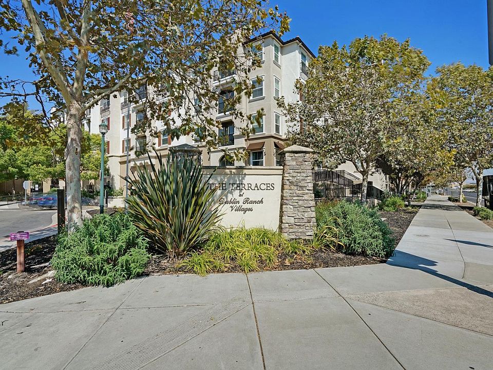 A MUST SEE! Welcome to this top-level unit of The Terraces at Dublin Ranch, featuring luxury and resort style pool, clubhouse with movie theatre, and gym. Private unit with 2B2B open floorplan, hardwood floors, stainless tell appliances, granite countertops, carpeting, gas fireplace, washer & dryer, breakfast bar, walk-in closets, 2 assigned parking spaces, and private balcony overlooking the courtyard. Close proximity to shopping, dining, BART, parks, award winning schools and easy access to highway 580/680.