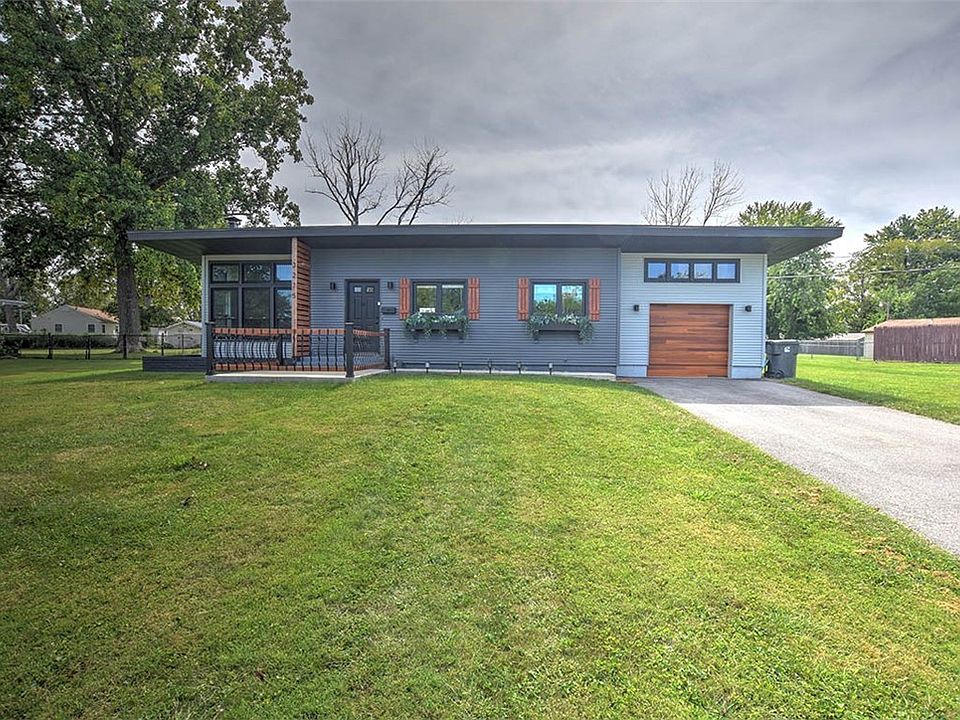 Cute ranch in a quiet neighborhood. Home is located close to shopping, restaurants and the lake. New kitchen cabinets with granite counter tops in 2023. Updated bathroom in 2024. New replacement windows in Livingroom in 2023. Freshly painted living room dining room and kitchen. Fireplace in loving room. Garage walls are freshly painted. Patio was installed in 2023. Asphalt driveway with nice front yard Home is move in ready.