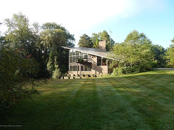 Amazing mid-century modern custom-built home nestled on 18.11 acres of land with a beautiful spring fed pond and stream. Built as a one bedroom home but used as a two bedroom. Excellent finishes throughout with extreme architectural interest in every inch of this home from the craftsmanship used in the ceiling heights to the amazing windows. Gleaming hardwood flooring. Spectacular great room with soaring ceilings, a full wall of windows overlooking the water & land, and an adjoining dining area.Newer kitchen including stainless-steel appliances, granite counters, and special window & ceiling effects. Study with built-ins. Lovely master suite offering great private views, sunken tiled shower & tub combination, double sinks, and a Japanese floor! Walk-out lower level offering a studio or 2nd bedroom suite with full bath. Large pole barn. Chicken & Turkey coops (both with electricity). Barn machine shop for collectible cars wired for 360 AMP service, heavy gauge steel on the roof.