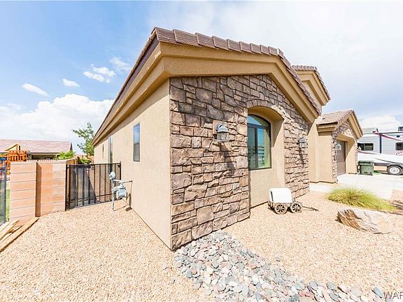 Beautiful custom home in the desirable Hualapai Shadows. Unique 3 bedroom floor plan with 3 full baths. Courtyard entry. Beautiful cabinetry, granite counters, upgraded insulation, Low-E windows, his-hers walkin closets in master, huge walkin shower in master bath with seperate whirlpool tub, oil rubbed bronze door hardware, light fixtures and Moen plumbing fixtures. The exterior features stone veneer, block wall, front and back landscaping, water feature, extended patio and much more. Truly a must see.