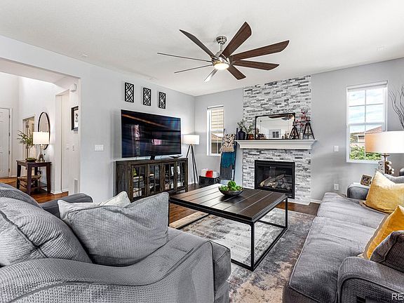 Welcome Home! This 4-bedroom, 3-bathroom home in the Meadows has been well loved, updated, and is ready for you to move in! As you approach the house, you will immediately notice the picture perfect exterior with the landscaped yard and the newly painted exterior. Upon entering, you'll be greeted by an inviting open layout that seamlessly connects the living room, dining area, and kitchen, creating the perfect space for both everyday living and entertaining. The kitchen features stainless steel appliances, exquisite granite countertops, refinished hardwood floors, and a unique backsplash. The living room centers around the stunning fireplace, providing warmth and ambiance on chilly evenings. The main floor also offers a convenient office space with elegant frosted-window French doors, making remote work a breeze. Upstairs, discover all four spacious bedrooms, two beautifully updated bathrooms, and the conveniently located laundry room! The expansive primary suite offers breathtaking mountain views. It includes a luxurious 5-piece bath with a double vanity and a generously sized walk-in closet. This wonderful home has a large unfinished basement currently providing ample storage. With tall ceilings, large egress windows and plumbing already installed for a fourth bathroom, there is enough room to get very creative. Step outside to the back patio and notice the beautiful new railing and landscaped yard, a perfect spot for outdoor entertaining or simply relaxing in your backyard oasis. Within walking distance to Bison Park and the Native-Legend and Ridgeline Trail, this home is also minutes away from shopping, entertainment, and is zoned for some of the best Douglas County Schools. SELLER IS MOTIVATED, COME SEE IT TODAY!