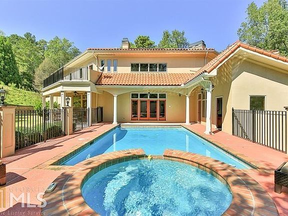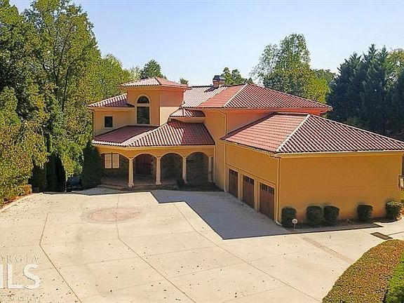 Gorgeous & modern & huge mediterranean masterpiece. PRIVATE GATES open to 2.5+ acre estate. If you want privacy and no HOA fees or restrictions, this is your estate! Top of the line building materials and gorgeous architectural features. Bright, open floor plan is built to surround the sparkling pool and spa making it feel like resort living every day. The stunning sunray beamed ceiling in the sun room adjacent to the two-story great room with beamed ceiling, fireplace and entertaining bar. Beautiful kitchen w/white granite counters and modern glass backsplash. Outside kitchen provides terrific place to entertain or just sit and enjoy life. First floor also has large guest bedroom. Upstairs is over-sized master suite including fireplace, private balcony, large closet, massage room and spa-like bathroom. Also upstairs is laundry, small office area, two secondary bedrooms w/ensuite bathrooms and play room. Terrace level is spectacular with entertaining bar, separate full kitchen, theatre room, billiard room, stage, guest bedroom and bathroom plus a ton of room for storage. Everything you could want! Priced well below build cost.