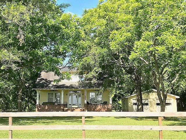 This one of a kind jewel is one you DEFINITELY don't want to miss! Situated on 5 gorgeous acres with a detached 2 car garage that is heated & cooled, a 2nd detached garage with kitchen & bathroom & a great little former fruit stand in the front yard, this home stands out from the minute you arrive! Gated entrance & fence were added in 2018. Foundation of entire home was also leveled in 2018! Gorgeous front porch was totally redecked in 2018 & stretches all the way across the front of the home! Enjoy the beautiful sunrises over the lake across the street while you relax! Beautiful fireplaces (chimneys swept in 2018) in formal living room & dining room & LOTS of windows to enjoy the natural light. Custom front door just adds to the charm of this one! Spacious kitchen with tons of character. One bedroom downstairs & guest bath downstairs as well. When you get to the top of the stairs, you will love the spacious loft area that can function as a play area, extra den, office or even a classroom if you are homeschooling! 2 large bedrooms off the loft area, one of which boasts ensuite bath and the other sports a cute bonus room that can also function as a 4th bedroom! HVAC units have both been replaced (upstairs in 2018 & downstairs in 2019). And you will not believe the gorgeous sunsets you will catch through the upstairs windows! Acreage is loaded with mature oaks, 11 satsuma/orange trees, 4 pear trees, 3 fig trees, 3 plum trees 25 persimmon trees, 8 blueberry bushes, 30 pecan trees & still plenty of room to do a garden, playground, pool, whatever you can dream up!! Call today for your private showing! (Al updates are per seller)