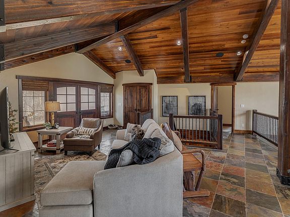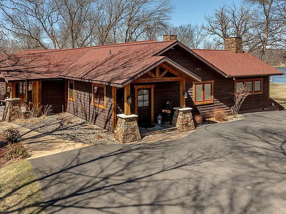 This custom-built home was fully renovated and featured by well-respected Baratto Brothers Construction. You will be over joyed with the greatroom with stone gas fireplace and dramatic up-north beams; custom spa room with a hot tub and sauna; wine cellar; exquisite patio with gas fireplaces and more! This incredible property has a bonus 36x28 heated garage/shop with tons of natural light. The luxurious lakeside primary bedroom suite is complete with floor to ceiling windows, a stone fireplace, executive office, a spa-like bathroom with a steam shower and large walk-in closet. The allure continues with a large lake-facing bunk room, and an additional primary bedroom with private balcony and a spacious en-suite bathroom. The property boasts a stunning par 3 golf green and a huge lake-side yard for plenty of entertaining and a brand-new shed for all your lake toy storage.