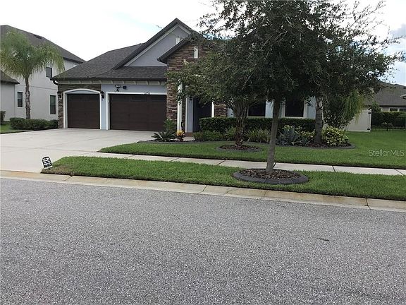LOOK NO MORE! Turn key ready home with great curb appeal. Don't miss out on this opportunity to live in Union Park; one of the most sought after communities in Wesley Chapel! As you cross the stunning wooden bridge you will automatically fall in love with this family friendly community. This modernly designed ranch style 4bed/3 full baths/3 car garage home, boasts of many upgrades. Leading up to the entrance, you can't help but notice the large covered paved front porch. The entry door is a stylish 8 foot decorative glass door that guides you into the spacious foyer. The great room is open and features wood looking ceramic tiles throughout & tray ceilings that grace the dining room. Step out onto your large triple slider covered lanai that has a spacious fenced backyard for your privacy! Entertain in the chef's kitchen with double walled ovens, large granite counter tops with plenty of island seating, a built-in wine rack, 42" Expresso cabinetry and stainless steel appliances. Wind down in your owners retreat which has tray ceilings, crown molding, and a luxurious garden tub for soaking after a long day. The home has been freshly painted; including baseboards and crown molding and is pre-plumbed for a water softener. Union Park is zoned for top rated public schools and is home to the Union Park Charter School! Union Park offers ULTRAFI, a resort styled clubhouse with splash pad, a large tropical pool, firepits, tot lot, dog park, Zen Garden, nature trails, outdoor exercise areas, basketball hoops, and much more! The community is close to I-75/275 for ease of commuting and is in the backyard of Wiregrass and the Outlet Malls! This home one won't last long on the market. Don't delay! Book your appointment to see you new home today!