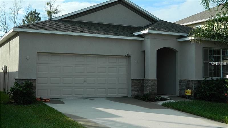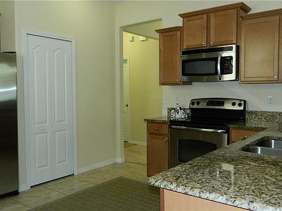 Home was built in 2013 and still looks brand new and move in ready with lots of upgrades from the entrance of the house and throughout. In the Master bathroom you will find a large shower area separate from the tub, Kitchen with upgraded stainless steel appliances, granite counter tops, that opens to the beautiful living room area that has 4 sliding glass doors to your large lanai that is great for entertaining. Completely fenced in yard. Tile floor through out the wet areas of the house, lots of storage space, water softener, large water heater and all new fixtures stay with the house.