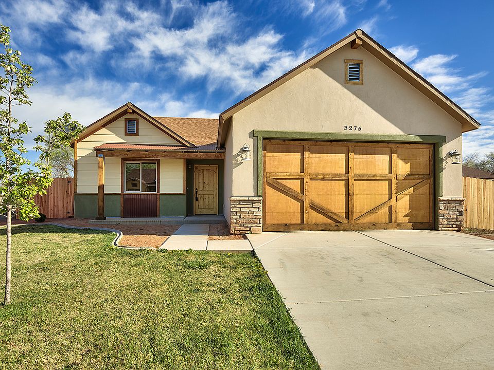 New construction home with rustic feel in Deerfield Subdivision offers 1,400 square feet with 3 bedrooms and 2 bathrooms. The welcoming covered front porch has rusted corrugated steel accents. Upgrades are evident as you enter through a solid wood front door into the open concept living area. Features of the home include: 9 foot ceilings, 8/12 trusses, hand textured walls and ceilings, bullnosed corners, two tone paint, forced air, upgraded lighting package, and oil rubbed bronze knobs and hinges. Garage has a wood cladded garage door and sunken floor. The kitchen with island has slate tile floors, maple cabinets, stainless steel appliances and recessed lighting. The island hosts the kitchen sink and dishwasher with extra countertop space and room for barstools. Adjacent dining area has slate tile floors and large bay windows. The tranquil master bedroom provides views of Mount Garfield and The Bookcliffs. The five piece master bathroom has dual sink vanity, framed mirrors and a large walk-in closet. If youâ??re looking for a home with upgrades and views, this is the home for you!