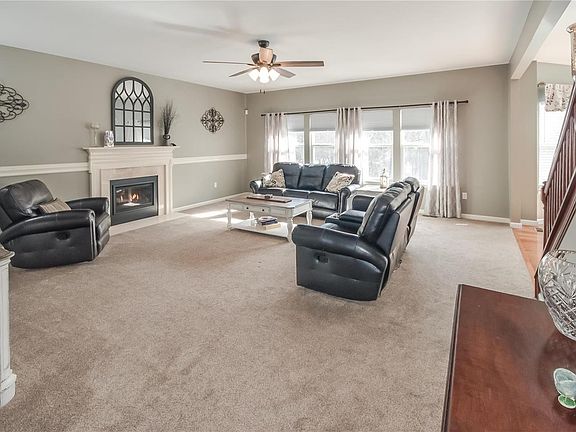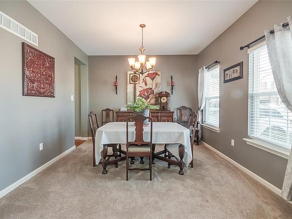 Over 3,000 sq ft 2-story, 4 bedrooms, 2.5 Bath & 3 car garage. At the end of the cul-de-sac .37 acre lot backs to woods for privacy & scenic view off with recently upgraded decking with newer steps to the fenced (19) yard. 9 ft ceilings on main level with hardwood floors in kitchen, breakfast room & foyer. Spacious great room with new gas log fireplace (19) & wall of windows for tons of natural light. Kitchen has lots of 42" cabinets, newer countertops (21) center island, ceramic tile backsplash (21), fridge (23) & pantry. Formal dining & living/office rooms on first floor. Large main floor laundry & mud room. Huge primary bedroom with walk-in closet & luxury bath - double sinks, separate tub & shower. 3 bedrooms, all with walk in closets plus sitting room on 2nd level. Full bath with double sinks & linen closet. 2 HVAC zones, newer architectural roof. Walk out, deep-pour foundation & rough-in. One finished soundproof room in lower level.