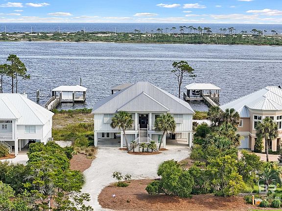 Experience the unbelievable view from this 2014 built J.L. Loper home on Ono Island overlooking Ole River. The home has been exquisitely decorated by Brandice Griffin of Interiors by Brandice and will be sold partially furnished! Enjoy your huge screened in porch overlooking your boat dock with 2 boat lifts and unobstructed views of Ole River. This 5 bedroom 3.5 bath home offers a spacious kitchen with gas stove and bakers pantry with plenty of cabinet space. Schedule your showing today to see this River Road home on the private gated community of Ono Island. A perfect waterfront refuge with 3478 square feet of living space equipped with an elevator and plenty of room for your family and friends. Highly sought after LOCATION! Live in Paradise. This home is a musts see. Buyer to verify all information during due diligence.