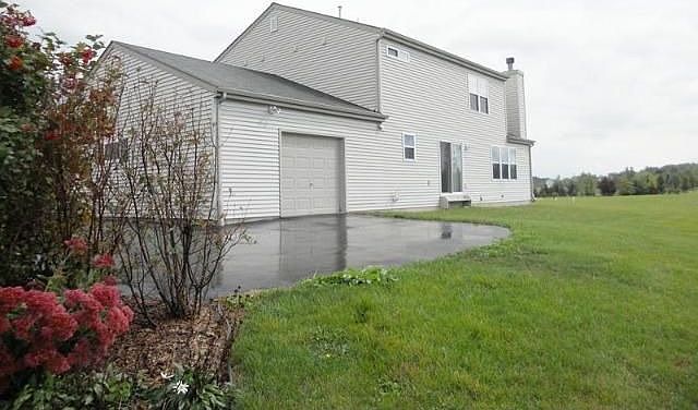 Open concept 2-story home on 4.44 acres. New hardwood floors throughout main level. Kitchen has attached dinette, island, recessed lighting & sliding doors to huge backyard. Great room w/stone fireplace can be natural or gas burning, remote controlled blinds & beautiful french doors. Large master suite w/WIC, double sinks & whirlpool. Six panel doors, WIC in all bedrooms & extra wide staircases. Paved circular driveway, drive-thru garage & fruit trees (pear, cherry & apple). Plus one year warranty!
