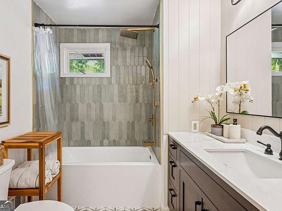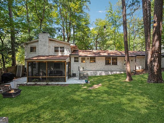 Tucked on a quiet dead end street, this renovated home sits on nearly half an acre and features timeless limewashed brick, a two car garage, and a private, welcoming setting. Inside, thoughtful upgrades set this home apart, with all four bedrooms located upstairs on one level for ideal flow and convenience. The primary suite is a true escape with a spa inspired rain shower and walk in closet, while the hall bath offers a deep soaking tub perfect for unwinding. The kitchen blends style and function with quartzite countertops, an island with built in storage, and newer appliances including a stove with a built in air fryer. Three inviting living spaces, a bright living room, a cozy den with a fireplace, and a screened in porch, make everyday living and entertaining easy, while the lower level adds a versatile bonus room ideal for a home office or guest space. Outside, enjoy a spacious, fully fenced backyard perfect for kids, pets, or gatherings. Convenient to I 285 and I 85, with Midtown, Buckhead, Perimeter, and Tucker Northlake all within 20 minutes, plus a large Kroger and restaurants less than a mile away. Optional Embry Hills Club membership includes a 12 foot deep pool, tennis and pickleball courts, playground, sand volleyball, and neighborhood events, and this home includes a transferable membership with no initiation fee, offering not just a house, but a lifestyle.