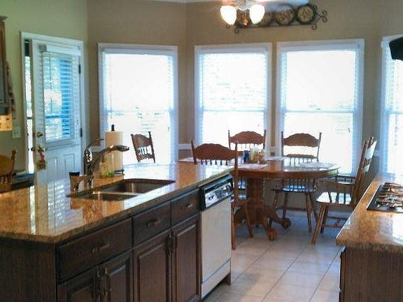 - Kitchen Features: Cabinets Stain, Eat-in Kitchen, Pantry, View to Family Room, Stone Counters, Kitchen Island