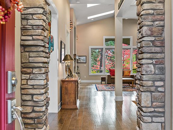 - Breakfast Bar, Central Vacuum, Double Vanity, Dry Bar, Kitchen Island, Linen Closet, Open Floorplan, Pantry, Primary Downstairs, Soaking Tub, Solid Surface Counters, Tile Shower, Vaulted Ceiling(s), Walk-In Closet(s)