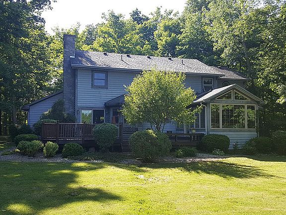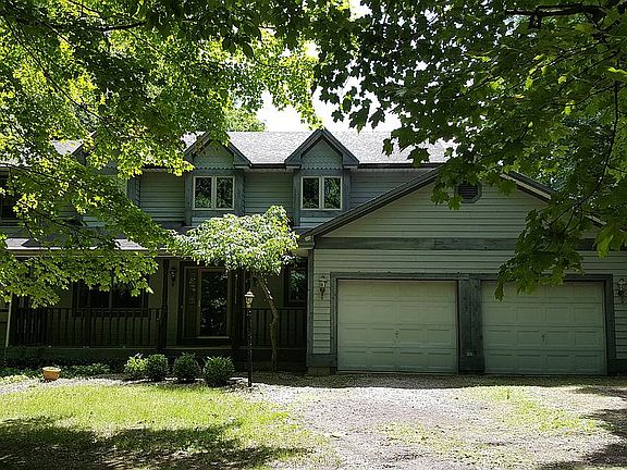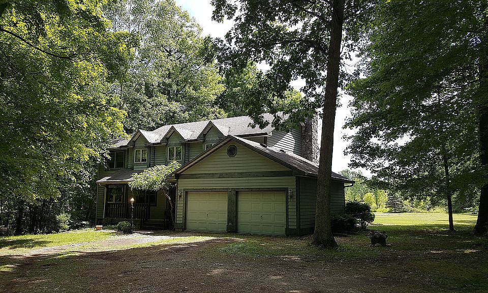 Enjoy privacy and nature in this 2-story cedar-sided house on a partially wooded 2.71 acre lot in Col. Crawford School District. Large yard n 1/3 acre pond behind house. House boasts 2 gas fireplaces, sunroom, large back deck, 2-story entranceway, and finished basement with 3/4 bath, wet bar, and game room. Upstairs you'll find 3 bedrooms and a large master with 2 walk-in closets, and ensuite with garden tub and shower. Call to make appointment to see! 419-563-5071