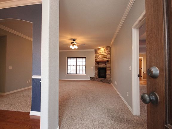 Lots of great features in this all-brick 4 Bedroom, 2 Bath home with 3 car garage with room for storage. All new carpet. Large living area has upgraded brick & stone corner fireplace with gas log. The Kitchen features alder cabinets, granite counter tops, hardwoods, stainless appliances, angled bar & adjacent casual eating area. Architectural details include large arched doorways, crown molding in living & formal dining, chair rail, vaulted ceiling in Bedroom 2/Office & lots of newer paint in popular gray shades. Master Suite has accented ceiling, large walk-in closet, double vanities, walk-in shower & jetted tub. All Bedrooms have nice sized closets. Great partially-covered Deck off kitchen eating area to enjoy the landscaped back yard with privacy fence. In-ground sprinkler system. Check out the low utilities!
