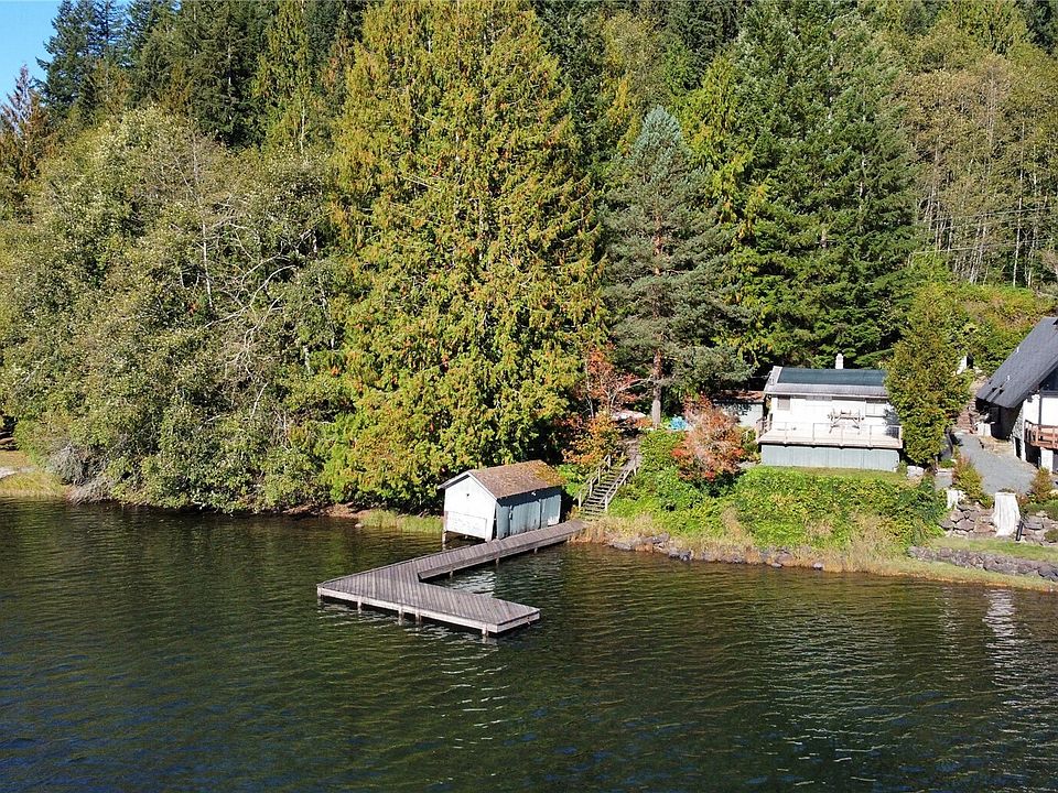 Existing boathouseExisting homePrivate lakefrontTree-lined driveway