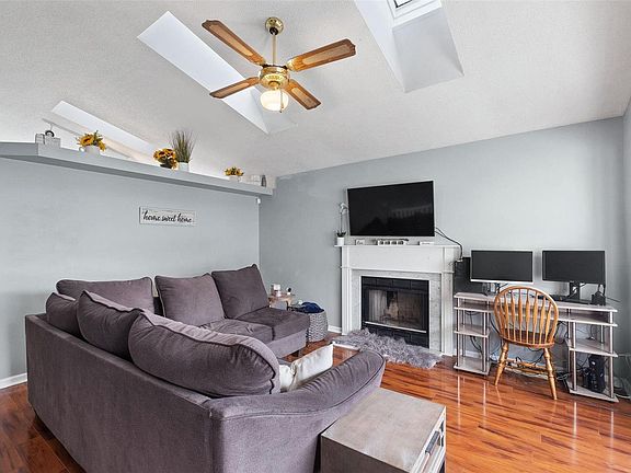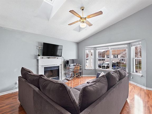 Move in ready ranch! Laminate floors welcome you to the cozy family room with vaulted ceilings, bay window and wood burning fireplace. The updated eat in kitchen is outfitted with black stainless appliances, single bowl sink, touchless faucet and white subway tile backsplash. An updated hall bath with tub/shower combo services two bedrooms. The primary suite bath is a walk in shower. The partially finished lower level has a large family room, unfinished storage, full bath, and bonus room perfect for home office, gym, etc. The big ticket items are recently updated: roof 2018 & HVAC 2019. Keep your car free of ice and snow in the 2 car garage. Enjoy summer nights on your deck. Pets will love the fully fenced in yard!