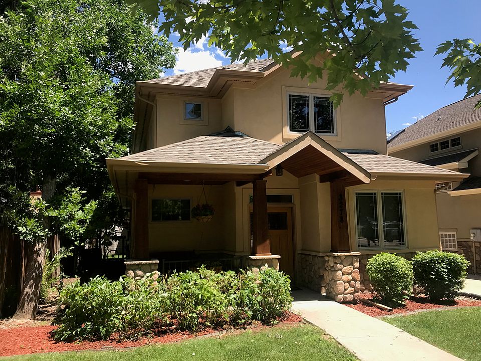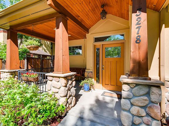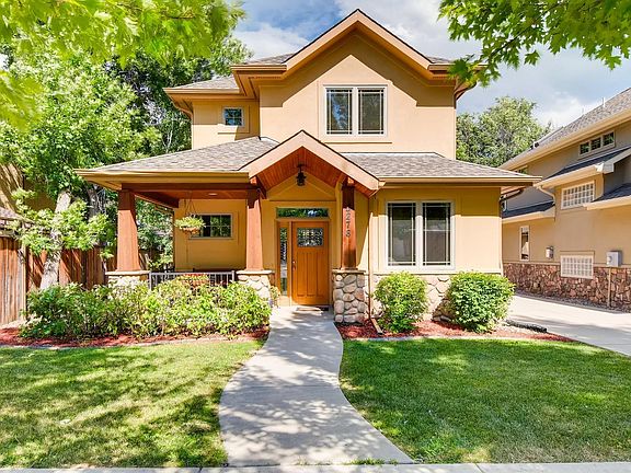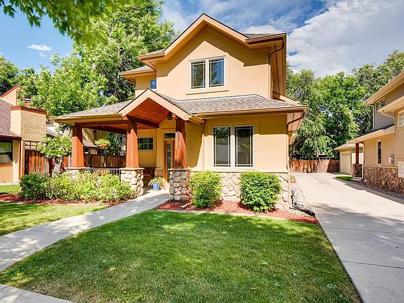 Gorgeous stucco & stone Craftsman Home in the heart of Boulder built in 2006! Enjoy your front porch & foothills views. Two-car garage for all your toys. Brilliant design & finishes--skylights, glass block--light & bright throughout. Main floor open floor plan w/galley style kitchen -- ss appliance, a gas cooktop, dark wood flooring, granite countertops.The adjacent family room is perfect for entertaining. Daylight basement has been finished w/a huge rec room w/stone window well, laundry & bath.