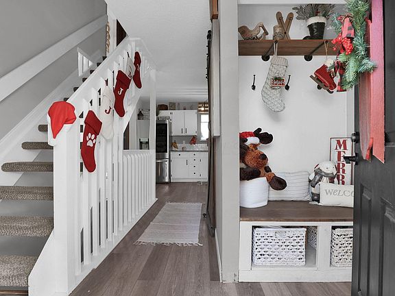 The entry level features NEW durable LVP flooring & a welcoming foyer with a convenient nook for coats & storage.