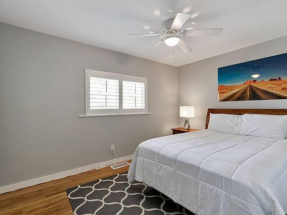 Beautifully renovated, this mid-century modern ranch house in the heart of desirable University Hills boasts high-end finishes. Featuring a recently remodeled kitchen with granite counters, stainless steel appliances, and a geometric tiled backsplash, this home combines style with functionality. Original preserved hardwood floors extend throughout the property, complemented by tile floors in the kitchen, laundry, and bathrooms. Step through the French doors from the dining area into the manicured, oversized backyard, complete with a dining patio, privacy fence, and fire pit. The home includes a full-size, insulated two-car garage, wired for 240-watt charging, and offers additional driveway and street parking. Coziness is key with double-pane windows, plantation shutters, and central air. Currently configured as a 3-bedroom with an office, it can easily be converted to a 4-bedroom setup. The garage is equipped with a 240-watt charger for electric vehicles, enhancing your modern living experience. Additional driveway and street parking are also available. Enjoy the Colorado lifestyle with easy access to the Highline Canal Trail, perfect for pedestrians and bicyclists. Eisenhower Park is within walking distance and features an outdoor pool and recreation center. Centrally located for commuting and house hunting, this home is a skip from I-25, minutes to DTC, Cherry Creek, and Downtown, and close to public transit and light rail. To make your arrival smoother, a starter welcome packet is provided, including essential supplies such as toilet paper, soap, shampoo, conditioner, paper towels, dishwasher detergent, trash bags, laundry detergent, salt, and pepper. Please note that these supplies are not restocked as part of our industry-standard practice. The house currently includes an office space, ideal for those who need a dedicated area to work from home. This setup ensures productivity in a comfortable environment.