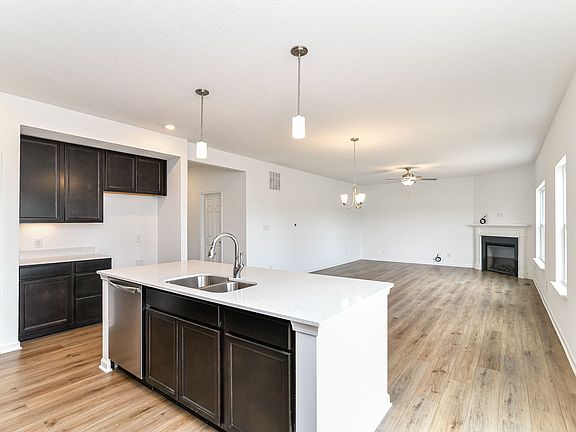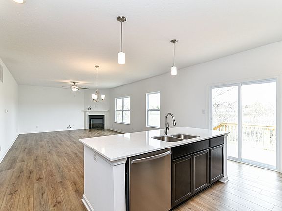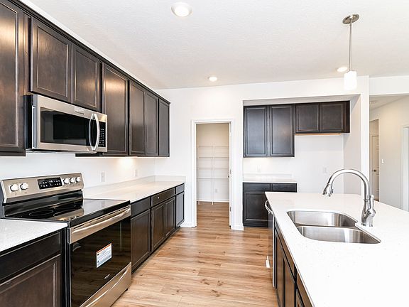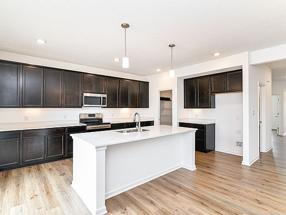 New home construction design features 5 bedrooms and 2 and a half bathrooms, over 2,800 square feet of living space, and 9' first floor walls. Strategically placed in the front of the home, the den is perfect for a home office or a spot to relax after a long day with double glass doors. Luxury vinyl plank flooring can be found in the common areas. A full, unfinished basement with a full bathroom rough in gives you extra storage space. Walking into the home, you will see the upgraded kitchen with straight cabinets, quartz countertops, and stainless-steel appliances. The primary suite has been completed with cultured marble countertops, a deluxe garden bath (separate garden tub and shower), and a double bowl vanity for maximum relaxation.
