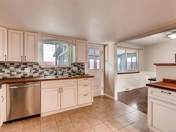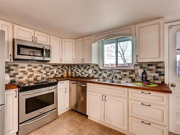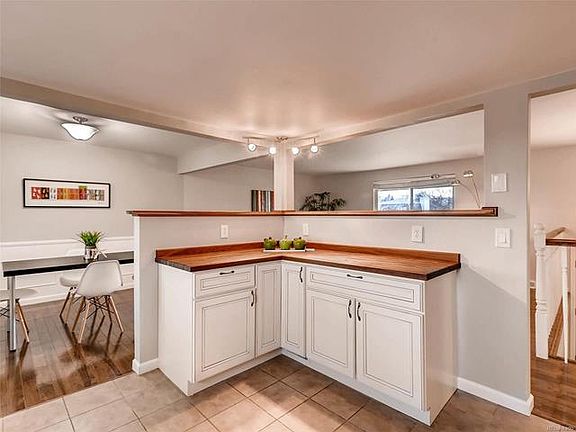Move-in-ready Golden Applewood beauty! Open and updated kitchen with white cabinets, slab butcher block counters, glass tile backsplash, and stainless steel appliances. Newer, appealing hardwood floors on the upper level. New furnace and central A/C units. Fresh paint throughout. Nice and bright throughout the house due to west-facing windows, and a garden level basement. Super convenient location near schools, shopping, and close proximity to I-70.