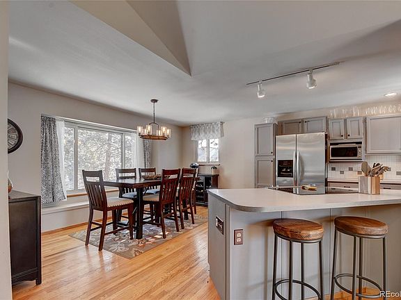 This Updated, 1990's built mountain home, is nestled in the trees with great views of Arapaho National Forest from the south facing deck off of the back of this comfortable home. This home features 3 bedrooms and 3 remodeled bathrooms plus an office. Vaulted ceilings, open floor plan and hardwood floors on the main level, sunny exposure and filled with natural light, this mountain home has been loved and meticulously maintained throughout, nearly all of the windows are new. The private master suite boasts it's own separate, private deck/patio with a dog run for your furry family members, plus a remodeled ¾ master bathroom, featuring new flooring, new granite counter top (to be installed any day), two sinks and new shower. The kitchen has plenty of counter space with room for a couple of bar stools and is open to the living and dining areas and you will love the window seat in the dining area. Plus, there is an office! The over sized 2 car garage is large enough for an extended cab truck with room for storage. Call for your private showing, you won't be disappointed.