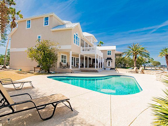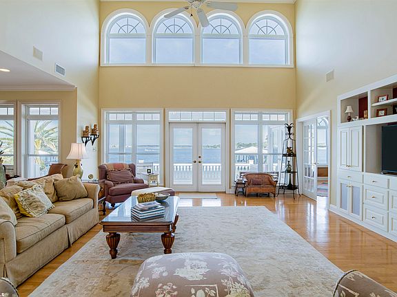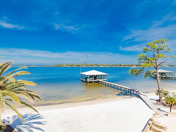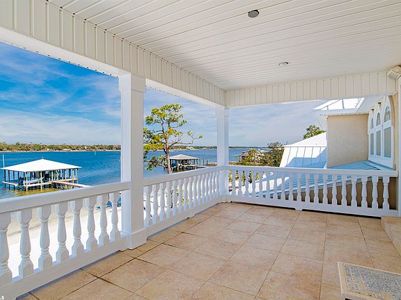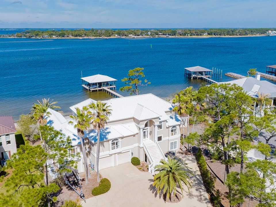 Location, location, location! One-owner custom well constructed home overlooking beautiful Bayou St. John. Exceptional views and spectacular year-round sunsets. Over 179 feet on the water with natural white, sandy beaches. Open flowing floor plan ideal for family gatherings and entertaining guests. Spacious rooms, large porches, quiet cul-de-sac street offering safety for pets and children to ride their bikes and enjoy a sense of freedom. Beyond the verandas, a pretty deck gives way to a pool overlooking the bay. Totally redone covered boathouse with 2 lifts/new flow-through decking. The home's ground floor flows from huge garages, workrooms, rod room, bath, 2 bedrooms, bonus room, tons of storage for all your toys, open great room with kitchenette. The second level includes four bedrooms, office, 4.5 baths, spacious kitchen, living room and more. Ride the ELEVATOR to the third level which features the primary bedroom suite with covered sunset balcony and another bedroom with private bath. Tranquil location--perfectly situated for water sports and fishing enthusiasts. This home could easily serve as a primary residence or the perfect island vacation villa.