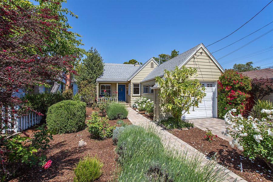 Built in 1939, this gorgeous home features an extensive front yard with custom brick pavers that provide a pathway through the lush garden, full of blooming rose and lavender bushes and drought resistant plantings. The entrance to the house is set back from the street, with a lovely wood framed covered porch and seating area that can easily accommodate a pair of comfy chairs or a bistro table. Originally a 2 bedroom, 1 bathroom, this home has been extended to include a spacious family room facing out to the backyard and 2 more bedrooms plus an additional bathroom upstairs. The home still retains all of the vintage charm that define this era: large divided light windows, detailed crown molding and hardwood floors, plus original hardware on many of the doors and windows.
