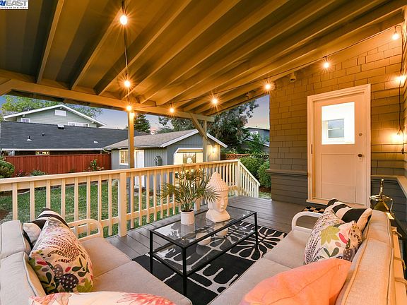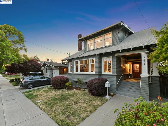 Built in 1912, this architecturally rich Alameda East End 5BR/2.5BA Craftsman home provides plenty of space to live, work, and grow. Starting in its classic foyer, the 2795 SqFt home features Arts & Crafts period details including stained glass, mullioned windows, built-in glass cabinetry, pocket doors, and crown molding. The sunny great room has picture and casement windows and an ornate stone fireplace flanked by glass cabinets. New blonde hardwood flooring spans into the light-filled formal dining room, with period pocket doors and built-in cabinetry. The refreshed kitchen is beyond the dining room, as well as a convenient laundry room and powder room. Through the backdoor, a dreamy covered deck overlooks the yard for California living at its finest. A large outbuilding provides flexible space for office, storage, workroom, or ADU potential. Two generous bedrooms with closets and a full bath complete the downstairs. Upstairs boasts three additional bedrooms, an enclosed sleeping porch, a full bathroom, and a large landing that feels like another living room. A big basement provides ample storage. Ideally situated near top rated local schools, Lincoln Park (with playgrounds, courts, and pool), and quick transbay bus service to SF.