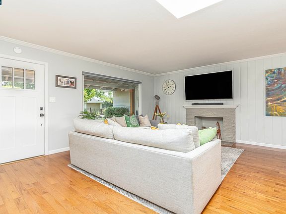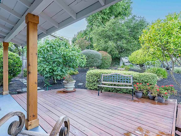 Updated delight on large sunny lot nestled between Burton Valley and Downtown Lafayette. You will meander past happy and productive citrus and fig trees on the way to the welcoming entry deck and porch, then on to the craftsman style entry door. Recent stylish remodel to kitchen and baths. Hardwood flows through the living areas upstairs, with newer carpets in the 3 upstairs bedrooms. Downstairs, you will find 2 large rooms, one used as a family room, and the other as a guest sleeping area. There is great storage under the house as well. There is a large sunset deck on the back of the house, with patio area underneath accessed from the lower family room. The lot is just over half an acre, with plenty of room for more gardening, chickens, or adventures! Dual paned windows throughout and newer roof (2018) and ceiling insulation. Large solar array (owned) with upgraded electrical panel, and 220V power wired for EV charging to the 2-car garage. Close to town, trail and parks, and St. Mary's College.