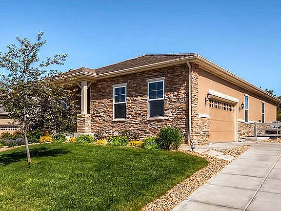 Stunning, well maintained, ranch home in Anthem Highlands, with unobstructed mountain views from the covered front porch and the back yard! Home features 7 bedrooms and 10ft ceilings upstairs, with 9ft basement ceilings! One bedroom features french doors to double as an office. Home backs to a huge tree-lined berm, for a private (and quiet) backyard with no house behind you! Hardwood floors throughout, stainless appliances, gas stove, and solid Corian countertops. This home has an awesome open floor plan, a huge professionally finished basement with a 2nd living area, 3 additional bedrooms, a 3/4 bath with wheelchair accessible shower, and ample storage space.