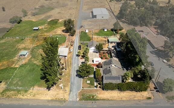 There is a carriage house that was moved to the site around 1930 (along with the main house). The carriage house consists of a charming studio apartment up top, and a shop on the ground floor. There is a detached 2 1/2 car garage, and several goat and horse pens and corrals. Also included in the sale is a 5th wheel travel trailer with 2 slide outs. It is permanently parked in the side yard and is great for guests or to Airbnb. There is 4/10ths of a miner's inch of pleasant valley canal water included with the sale.There is also a fish pond and a gazebo too! And....There have always been goats on this property, and the seller is even including 2 GOATS WITH THE PURCHASE! How is that for added value?! (There is an adjacent 3.06 acre parcel of land sold separately for $129,000.)