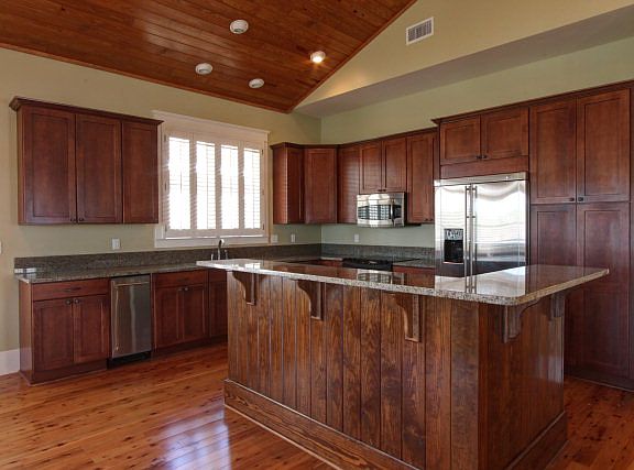 Open kitchen, wood floors, GE Monogram appliances, wonderful screened in porch with fireplace and outdoor kitchen. Property sold AS-IS - Chinese drywall is throughout the building, will need to be gutted.