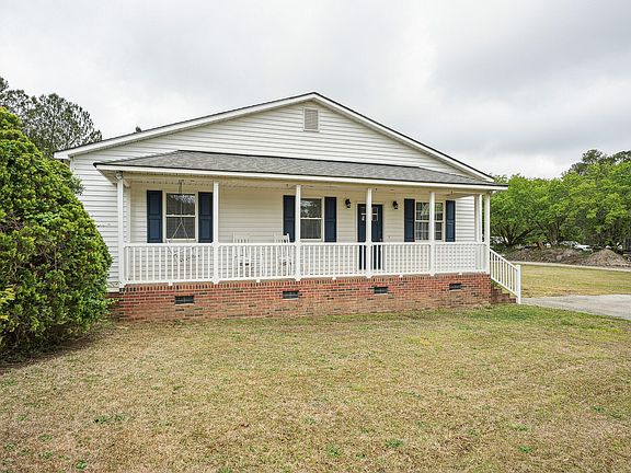 Come discover modern countryside living in this stunning 3-bedroom Ranch, perfectly situated on 2.63 private acres with no city taxes and no HOA. A covered front porch, complete with rocking chairs and a hanging bench swing, spans the length of the home, inviting you to relax and take in the peaceful surroundings. Step inside and prepare to be amazed by the immaculately maintained open-concept floor plan, where sunlit spaces and durable laminate flooring flow seamlessly throughout. The spacious Family Room, adorned with crown molding, opens to a gorgeous white cabinet Kitchen that is truly the heart of the home. Boasting Granite counters, SS appliances, a grey tile backsplash, and ample cabinet storage, this Kitchen is as functional as it is beautiful. A sliding barn door reveals the pantry, while the oversized center island offers plenty of prep space and seating for up to eight bar stools, making it perfect for entertaining and everyday living. The Primary Suite is a private retreat, featuring a tray ceiling, recessed lighting, and a custom walk-in closet. The en-suite bath has been beautifully updated with a white dual vanity, Granite counters, and a spacious walk-in shower. Two secondary bedrooms share a stylish hall bath, complete with a single vanity, Granite counters, and a shower/tub combo. Outside, the nicely landscaped front and backyard provide endless opportunities for relaxation and recreation. The back deck is the perfect space for outdoor gatherings, with steps leading down to the fire pit area, ideal for evenings under the stars. The HVAC and Water Heater, both just four years young, are an extra perk! 1% Incentive towards Buyer's Closing Costs up to $5K with the use of Preferred Lender-Nick Overcash with FCMA and Preferred Closing Attorney-McCall Law Firm.