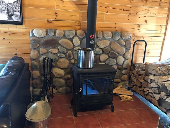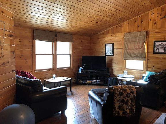 This beautiful log home sits on 24 private acres with a pond and stream running through it. Enjoy the wildlife playing in the stream. The spacious, open living room and kitchen give you plenty of room for entertaining. The master bedroom has a jetted tub. The basement is partially finished and includes a rec room, large laundry room, work space, and a lot of storage.