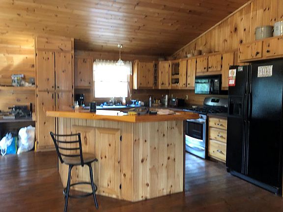 This beautiful log home sits on 24 private acres with a pond and stream running through it. Enjoy the wildlife playing in the stream. The spacious, open living room and kitchen give you plenty of room for entertaining. The master bedroom has a jetted tub. The basement is partially finished and includes a rec room, large laundry room, work space, and a lot of storage.