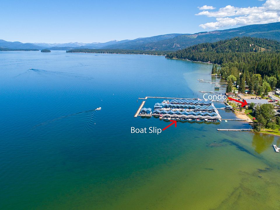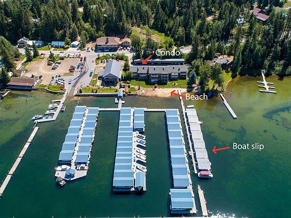 Waterfront Condo on Priest Lake! Cute 1bd/1ba top floor unit with breath taking views! Covered boat slip with power and water to the slip. Private setting with only 14 units in the development that shares a large grassy lawn, sandy beach, fire pit, BBQ area and a protected swimming area. Extremely close to restaurants, grocery stores, shopping, and endless trails in the backcountry to explore. The unit is set up for year round access so you can enjoy all the seasons at Priest! Renovated through out the years for a more updated style. Trex decking on an oversized deck that looks out over the lake and common area and has a private feeling at the end of the building. New paint on the exterior. 1 car detached garage and storage unit for each condo. Adjacent unit 13 is also available.
