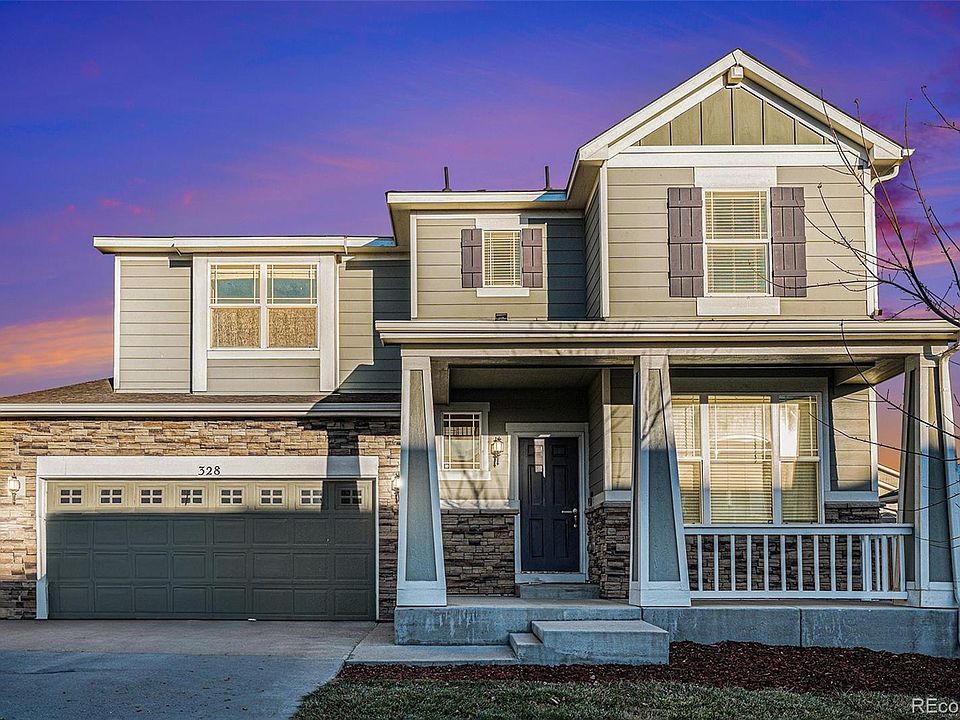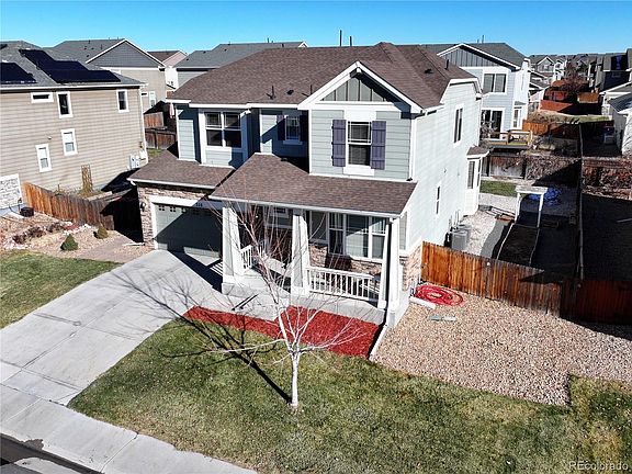 Welcome home to this stunning two-story gem nestled in a serene Brighton neighborhood! Boasting 3 bedrooms, 3 baths, and an open floor plan, this home perfectly blends modern updates with cozy charm. Step inside to find brand-new luxury vinyl plank flooring on the main level and plush new carpet upstairs, all complemented by fresh interior paint that sets the stage for your personal touch. The heart of the home features soaring 20-foot ceilings in the family room, complete with a cozy gas fireplace, creating a grand, airy space filled with natural light. The kitchen is a chef’s dream, equipped with all stainless steel appliances, granite countertops, an undermount sink, and beautiful cabinetry. A walk-in pantry provides ample storage, while the adjacent dry bar with a beverage refrigerator adds convenience and style. The open layout flows seamlessly into the dining area, making it perfect for entertaining or family gatherings. Upstairs, the primary bedroom is a true retreat, showcasing breathtaking Rocky Mountain views to the west. You'll love the large walk-in closet and 5 piece bath! One of the additional bedrooms also offers these stunning vistas—the perfect backdrop for winding down your day. With a full unfinished basement already plumbed, the potential for expansion or customization is endless. Outside, the backyard is designed for year-round enjoyment. Host gatherings on the new stamped concrete patio, cozy up around the firepit, or cultivate your green thumb in the garden box—ideal for growing fresh veggies or a salsa garden! The spacious 3-car garage is ready to accommodate your vehicles, tools, or Colorado toys. Located just half a block from open space and a short three-minute stroll to a neighborhood park, this home offers the best of outdoor living. Conveniently close to I-76, you’ll enjoy easy access to shopping, dining, and all your everyday needs. Don’t miss this move-in-ready beauty with its thoughtful updates, unbeatable views, and prime location!