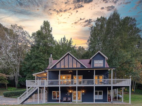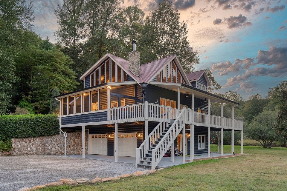 Welcome to the Lodge at Noontootla Creek! Located in the heart of the Aska Adventure Area, this private estate log cabin sits on a gorgeous 5+ acre lot surrounded in its entirety by Noontootla Creek! With its own waterfalls, babbling brooks and pools, a spring-fed pond, and picturesque meadows with mountain and creek views, find yourself in your own world when you enter the home's own private gate! This stunning black stained lodge is complete with an additional sleeping loft/bonus room, a five stall horse barn plumbed and ready for horses, and a "tiny home" guest quarters! Horse barn also has its own guest house. Like a home from the front cover of Southern Living Magazine, with wraparound decks, the sound of the creek, and with the forest service road right next door for your own horseback rides or hikes, this lodge is perfect for the adventurer, the entertainer, and mountain lover!