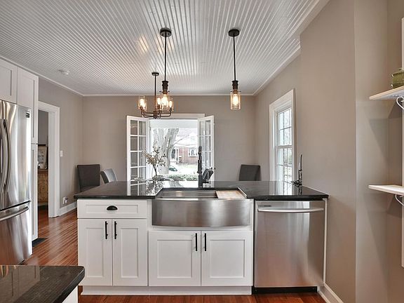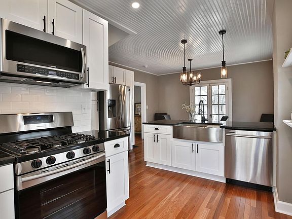 Beautifully renovated home in the heart of Clintonville! The living room features a fireplace with original tile, recessed lighting and new hardwood floors that extend throughout the first floor. Enjoy the open kitchen and dining area with french doors that open to the large front porch. Fully equipped kitchen with new Samsung stainless steel appliances, granite countertops, quality shaker cabinets. Second floor features the restored charm of the 1920s with three generous sized bedrooms. Classic mosaic tile floor; decorative wall tile, pedestal sink and clawfoot tub in the upstairs bath. Lower level full bath with penny tile shower and pedestal sink. Updated electrical wiring, HVAC, plumbing, exterior drain to the street, and insulated attic. 2 car detached garage. Agent owned